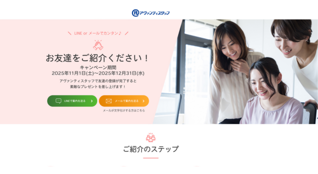 対象期間は12月31日までなので、アヴァンティスタッフでのお仕事を検討している方は早めの登録をオススメします。