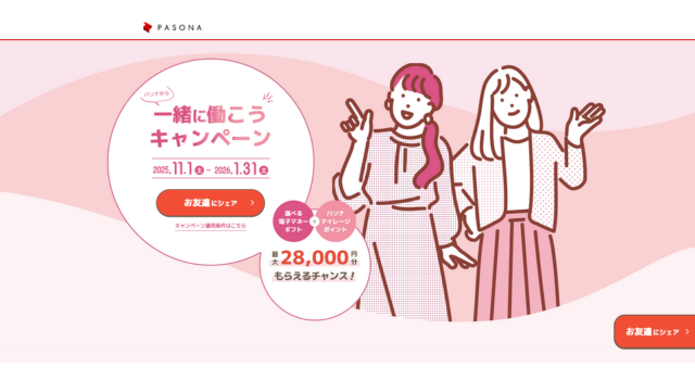 パソナに派遣登録がある紹介者と、パソナに初めて登録するお友達と紹介者に条件を満たす方に電子マネーギフトをプレゼント!